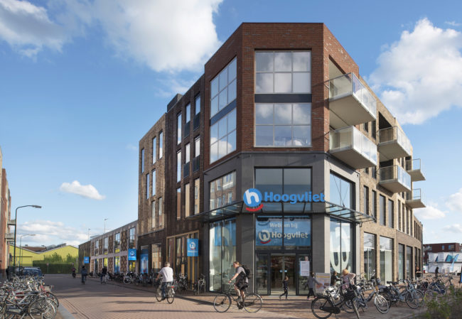 Philipsburgstraat 15 Leiden Kooiplein Leiden CV heeft in Leiden het project Kooiplein ontwikkeld. Naast andere bedrijfsruimten wordt een winkel voor Hoogvliet van 2.000 m2 gerealiseerd. De oplevering wordt eind 2016/begin 2017 verwacht.